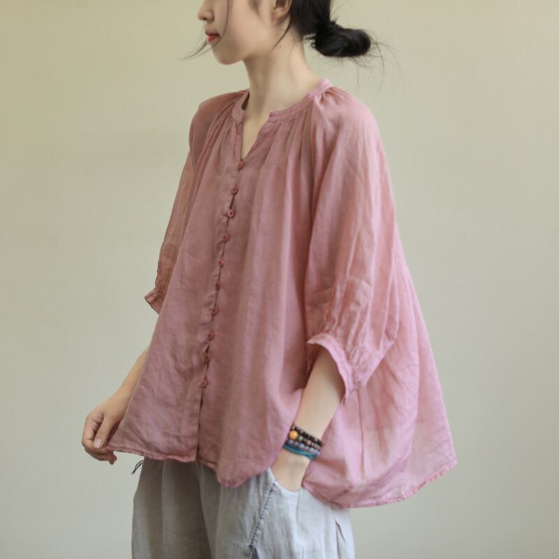 トップス レディース シャツ 上着 日系スタイル エレンガンス 無地 Vネック